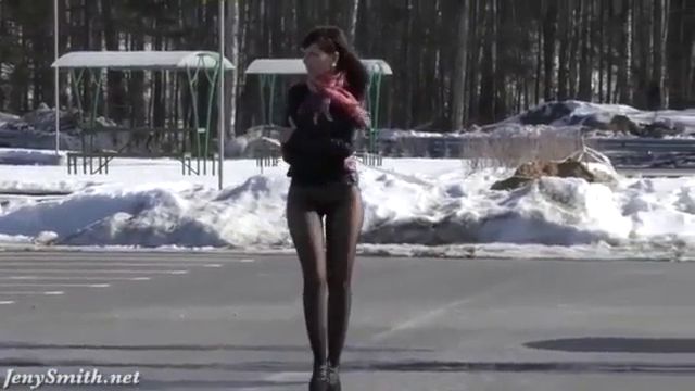 Jeny's walk in nature without a skirt in seamless pantyhoseJeny's walk in nature without a